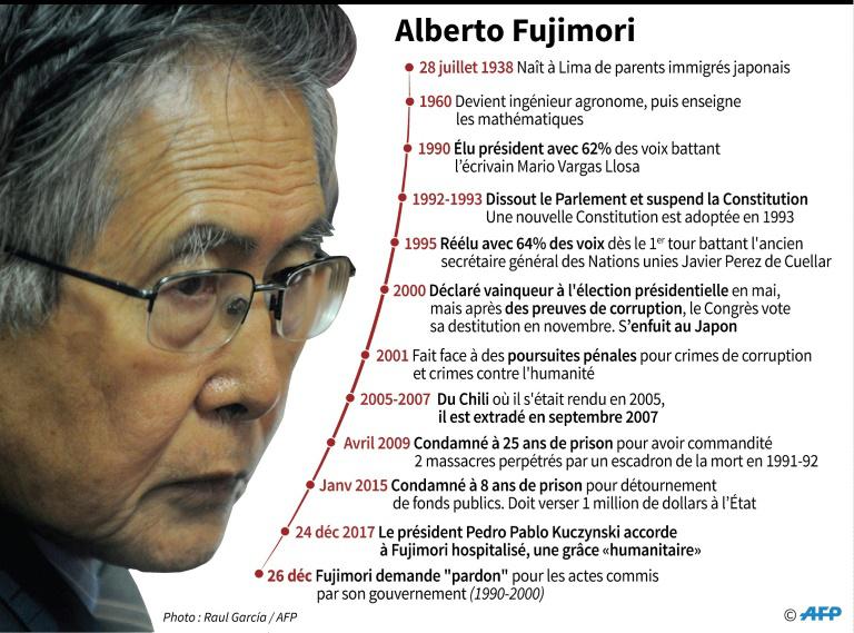 Président de 1990 à 2000, Alberto Fujimori, d'origine japonaise, purgeait depuis 2005 une peine de 25 ans de prison pour corruption et crimes contre l'humanité pour avoir commandité l'assassinat de 25 personnes aux mains d'un escadron de la mort durant la guerre contre les guérilleros du Sentier lumineux (extrême gauche maoïste).
