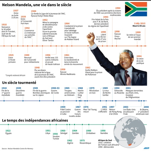 La veille, lors d'un discours dans un stade de Johannesburg, point d'orgue des célébrations en hommage à "Madiba", Barack Obama avait rappelé "la vague d'espoir qui avait déferlé dans le monde" à la libération de Nelson Mandela le 2 février 1990, après vingt-sept années derrière les barreaux.