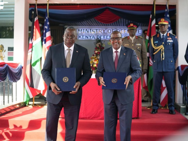 Le secrétaire américain à la Défense Lloyd Austin et le ministre kenyan de la Défense Aden Duale ont signé l’accord lors d’une réunion à Nairobi, la capitale kenyane. L’accord guide les relations de défense des deux pays pour les cinq prochaines années alors que la guerre en Afrique de l’Est contre le groupe extrémiste al-Shabab lié à al-Qaïda s’intensifie.